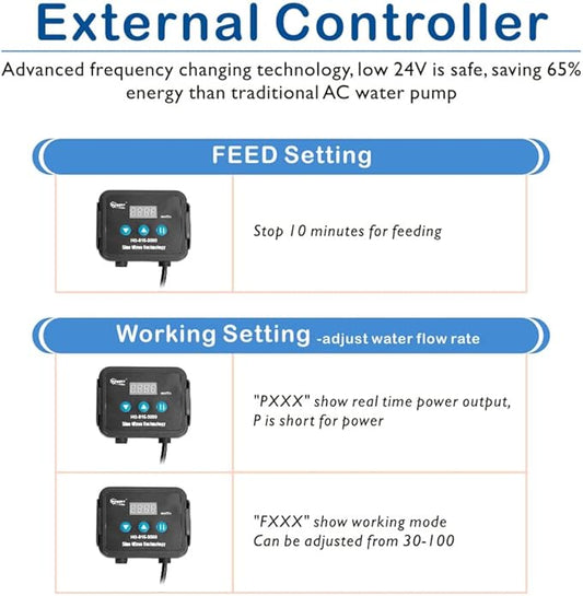 hygger 800GPH Quiet Submersible and External 24V Water Pump, with Controller (30%-100% Settings), Powerful Return Pump for Fish Tanks, Aquariums, Ponds, Fountains, Sump, Hydroponics (25W, 9.8ft)
