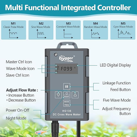 hygger Aquarium Gyre Wave Maker Fish Tank Cross-Flow Pump Adjustable Aquarium Water Circulation Powerhead with Controller Magnetic Base