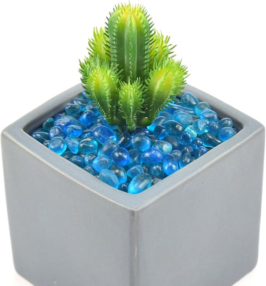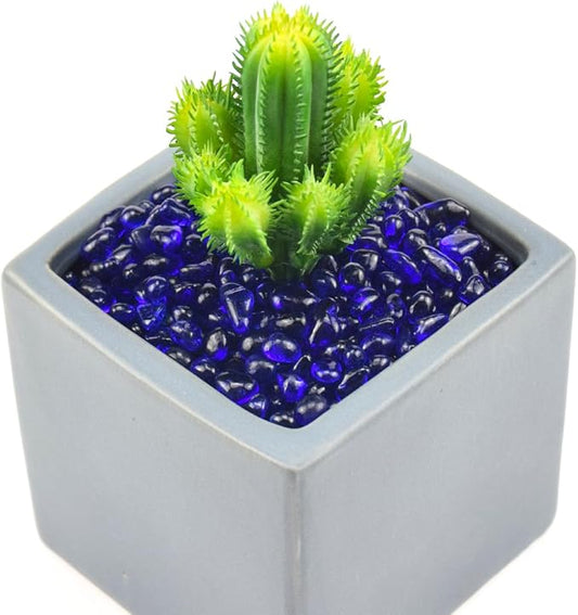 1 Lb (460 g) Deep-Blue Sea Glass Stones Irregular Rainbow Glass Pebble Decorative Rock Quartz Tumbled Gemstone Chips for Aquarium Decoration/Vase Filler/Jewelry Making/Handwork Craft/Gems Display