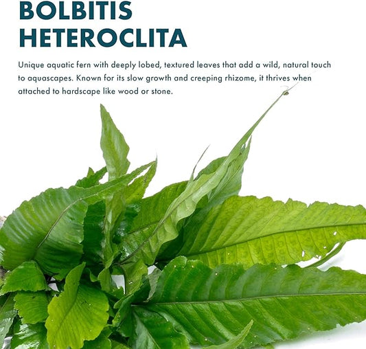 Live Plants - El Niño Fern (Bolbitis heteroclita) - Midground to Background Epiphytic Rhizome for Low to Medium Light Aquascapes - Dark Green, Slow-Growing Accent - Pot