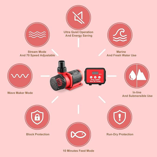 2640GPH 80W Aquarium DC Retrun Pump With LCD display Controller,DC24V 18FT Lift Controllable water pump for fresh and marine water fish tank,100 speeds ECO Quiet inline and submersible pump