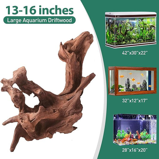 WDEFUN Natural Driftwood for Aquarium Decor, 1-Piece 13''-17'' Large Driftwood for Decorations on Fish Tank, Reptiles Bearded Dragon Accessories or Air Plants