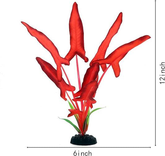 2-Pack 12 Inch Aquarium Silk Aquarium Plants, Artificial Plastic Plant for Small Tank, Goldfish, Fish Hides (Red, 12 Inch)