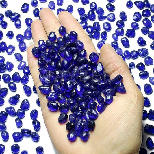 WAYBER Glass Stones, 1Lb/460g Irregular Sea Glass Pebbles Non-Toxic Artificial Gemstones for Gem Display/Vase Filler/Terrarium Flowerpot Aquarium Turtle Tank Decoration, Dark Blue