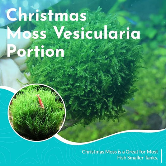 Aquarium Christmas Moss Vesicularia Portion Plant - All Natural & Organic Aquatic Plants - Absorbs Excess Nutrients - Long Lasting & Easy to Care Plants - Suitable for Summer & Winter