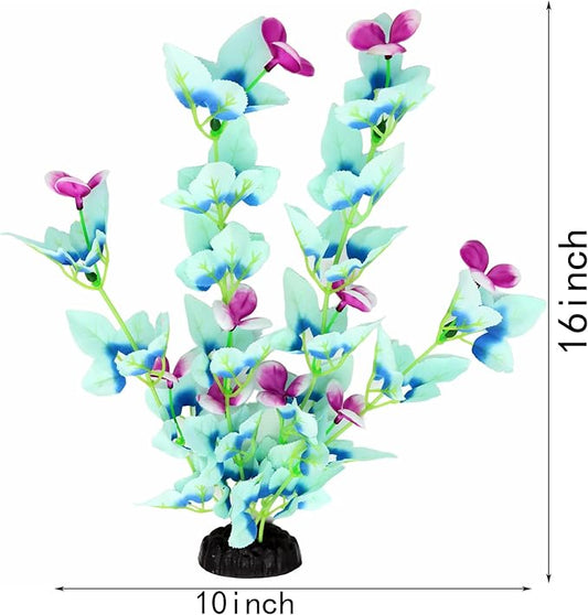 16 Inch Aquarium Fish Tank Plant Betta Fish Tank Decor,2 Pack Silk Aquarium Plants for Aquarium Decoration (White-Blue)