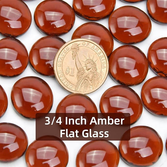 5LB Amber Flat Glass Marbles for Vases, Gemstone Beads Vase Filler Decorative Glass Pebbles for Fish Tank, DIY Crafts, Autumn Centerpieces, Aquarium Decor Rocks