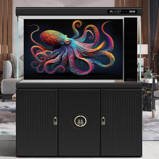 Octopus Aquarium Background Exquisite Colorful Octopus Terrarium Background Glowing Octopus on Black Background Fish Tank Backdrop Octopus Backdrops Poster Wallpaper Decorations Vinyl 36x18in