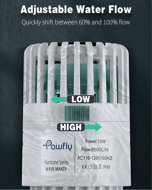 Pawfly Wave Maker for Aquarium, 2000 GPH 10W Aquarium Powerhead, Quiet Submersible Wavemaker for Fish Tanks up to 150 Gallons, Water Circulation Pump with Strong Suction Cup Base