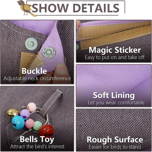 QBLEEV Parrot Anti-Scratch Shoulder Protector Hang Bird Anklet&Toys, Multi-Functional Pet Shoulder Pad Diaper Shawl for Small Medium Parakeets Cockatiels, Sun Conures, Macaws Lovebirds (Purple)