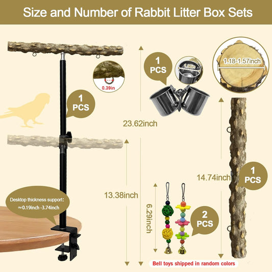 18-27 Inch Height Adjustable Bird Perch Pepper Wood Desktop Bird Training Perch Stand with Feeding Cups and Swing Toy Parakeet Perches Indoor and Outdoor Parrot Stand for Small to Medium Birds