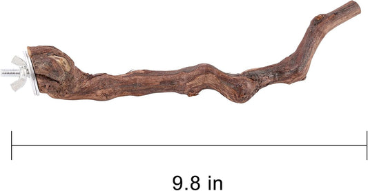 Bird Perch Stand Toy, Natural Grapevine Wood Parrot Perch Bird Cage Branch Accessories for Parakeets Cockatiels Conures Macaws Finches Love Birds(9.8" Length)