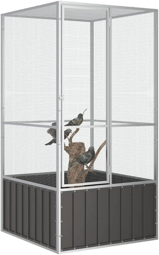 Steel Bird Cage, Large Flight King Bird Cage for Cockatiels African Grey Quaker Amazon Sun Parakeets Green Cheek Conures Pigeons Parrot Bird Cage Birdcage, Anthracite 43.7"x42.1"x83.3"