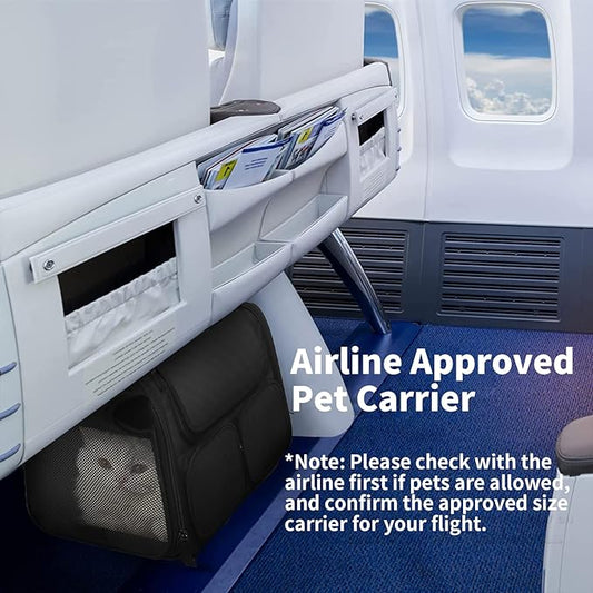 FUKUMARU Cat Carrier, 4 Mesh Windows Small Dog Carrier, 4 Storage Pockets Cat Travel Bag, Under 15 lb Airline Approved Pet Carrier, Rollable Cover for Nervous Cats, Black