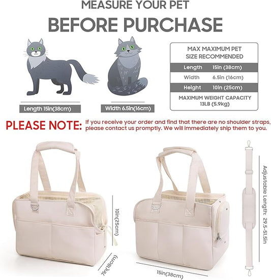 Dog Purse Carrier for Small Dogs, Soft Soft Sided Folding Dog Carriers for Small Dogs Medium Cats Puppies up to 15 Lbs, Washable Breathable Puppy Carrier for Outdoor Travel (Large Beige)