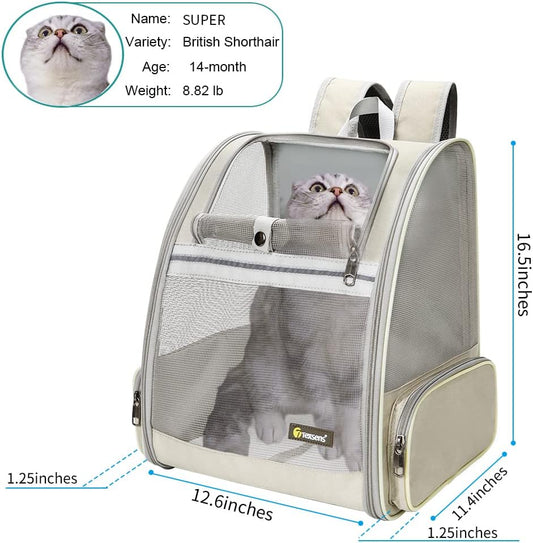 Texsens Pet Backpack Carrier for Small Cats Dogs | Ventilated Design, Safety Straps, Buckle Support, Collapsible | Designed for Travel, Hiking & Outdoor Use (Creamy White)