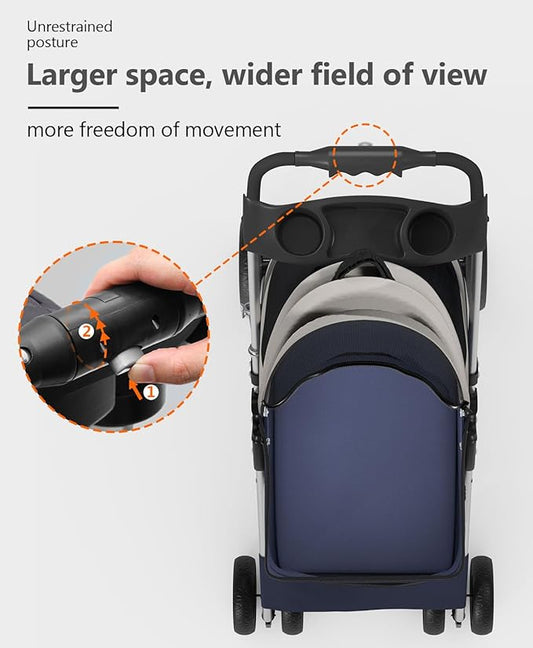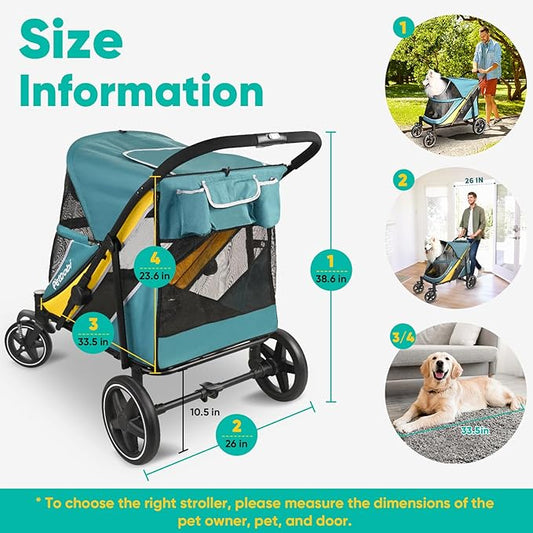 Medium Dog Stroller for Large Dogs, pet Stroller for Medium Dogs Up to 66lbs, All-Terrain with Adjustable Handle & Canopy, Sun Shades, Storage Organizer, Waterproof Oxford Fiber