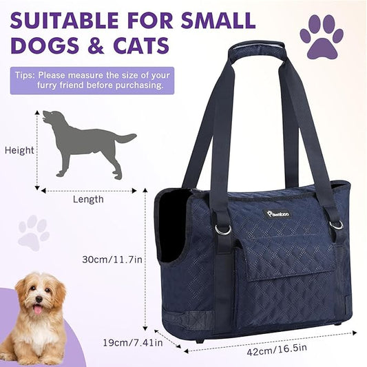Pawaboo Dog Purse Carrier for Small Dogs with Pocket, Lightweight Dogs and Puppies Tote Bag Carrier, Dog Carriers Soft Sided for Puppy Cat Rabbit, Shopping Travel Puppy Carriers Under 11 LBS,Navy Blue