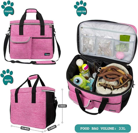 PetAmi Dog Travel Bag - Travel Pet Organizer with Food Container and Bowls, Perfect for Weekend Camping, Cat Diaper Bag (Pink, Large)