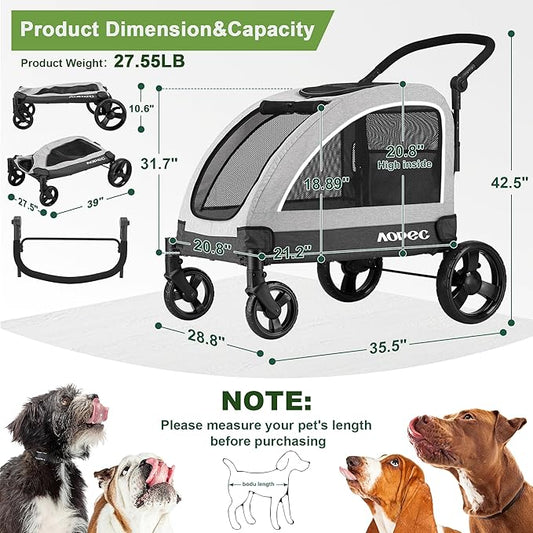 Large Dog Stroller - Dual Entry Safety Folding Pet Stroller with Adjustable Handle, All-Terrain 4-Wheel, 160 lbs Weight Capacity for Travel & Outdoor Adventures - Gray