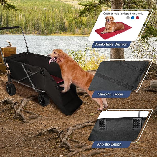 REDCAMP Folding Dog Wagon Cart with Extendable Rear End Heavy Duty, 220L Large Collapsible Utility Cart Dog Stroller with Tailgate for Sports Shopping Pet, Black