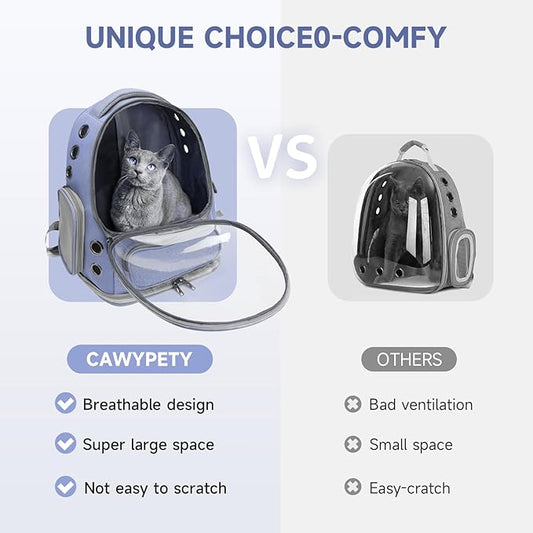 Cat Backpack Carrier, Breathable Cat Carrier Large Space Bubble Pet Backpack for Kitty Small Dog up to 12lbs, Transparent & Foldable Pet Carrier for Travel Hiking (Blue