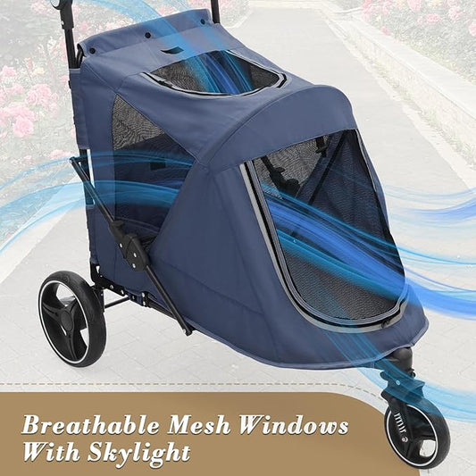 Athena Collection 3 Wheels Pet Stroller Fabric Dog Cart Dog Stroller for Large Dogs 55 Lbs Pet Stroller with Mesh Windows, Zipper Back Pocket, Safety Tether, Angle Adjustable Handlebar, Navy Blue
