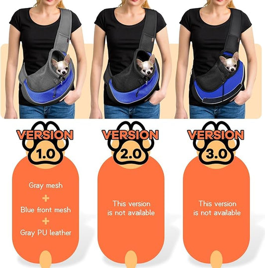 YUDODO Pet Sling Carrier for Small Dogs & Cats – Hands-Free Puppy Carrier with Safety Hook, Large Zipper Pocket, Soft Breathable Mesh, Adjustable Strap & Reflective Strip (Blue 1.0 L)