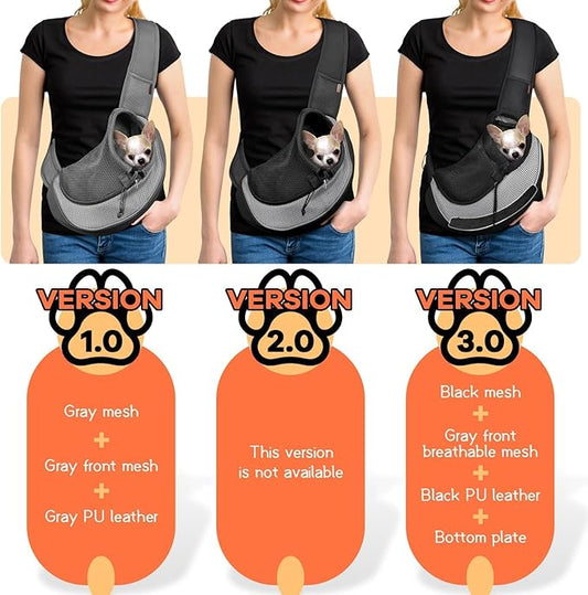 YUDODO Pet Sling Carrier for Small Dogs & Cats – Hands-Free Puppy Carrier with Safety Hook, Large Zipper Pocket, Soft Breathable Mesh, Adjustable Strap & Reflective Strip (Black 2.0 S)