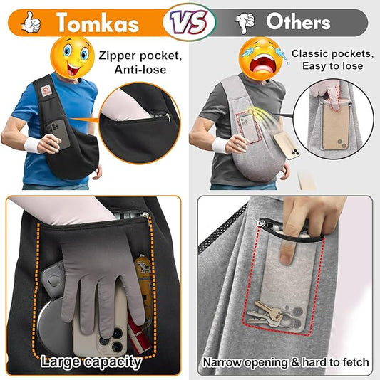 Tomkas Small Dog Sling Carrier - Adjustable Strap & Zip Pocket - Suitable for Puppies (Black)