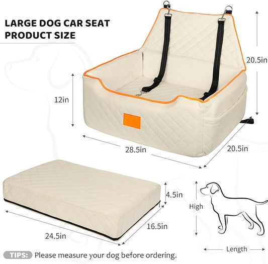 Dog Car Seat for Large/Medium Dog, Booster Seat Under 55Lbs or 2 Small Dogs, Detachable and Washable Travel Pet Seat with Thick Cushion and Storage Pockets (Beige)