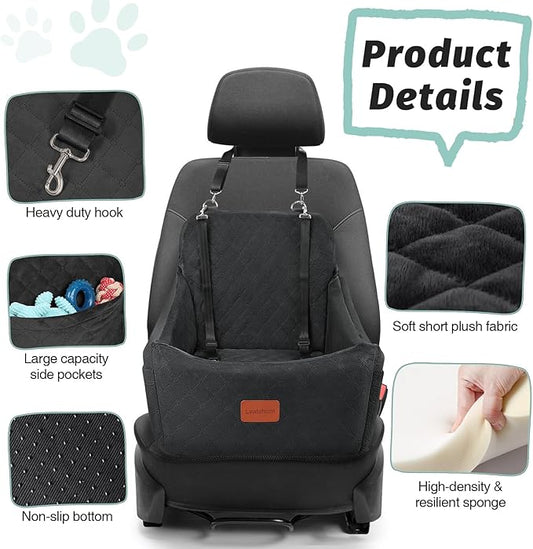 Dog Car Seat for Dogs Up to 35lbs,Fully Detachable and Washable,Memory Foam Covered Soft Fabric,Easy to Install with Adjustable Straps,Anti-Slip Bottom,Two Side Pockets(Black,Medium)