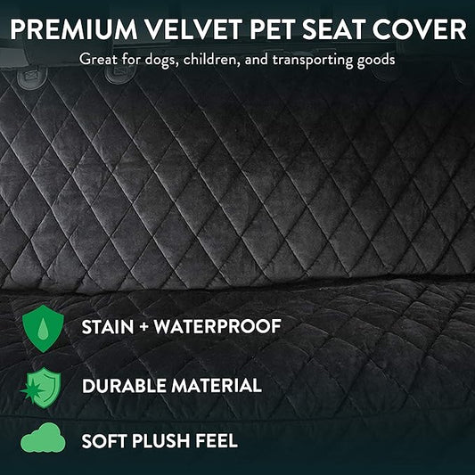 Plush Paws Products Velvet Rear Car Seat Protector w/o Hammock | Washable & Waterproof Back Seat Dog Cover for Car, Truck, & SUV | Nonslip, Tear Resistant Pet Seat Cover | Regular Charcoal