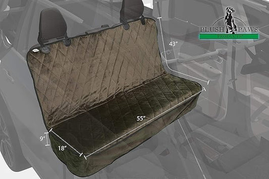 Plush Paws Products Velvet Rear Car Seat Protector w/o Hammock | Washable & Waterproof Back Seat Dog Cover for Car, Truck, & SUV | Nonslip, Tear Resistant Pet Seat Cover | Regular Desert Sand