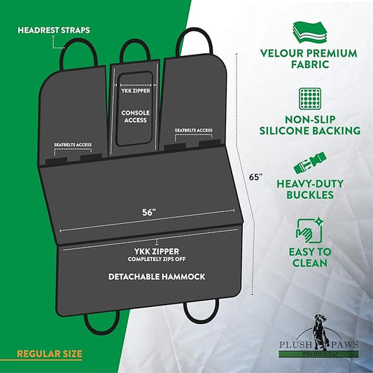 Plush Paws Products Velvet Rear Car Seat Protector w/Hammock | Washable & Waterproof Back Seat Dog Cover for Car, Truck, & SUV | Nonslip, Tear Resistant Pet Seat Cover | X-Large Charcoal