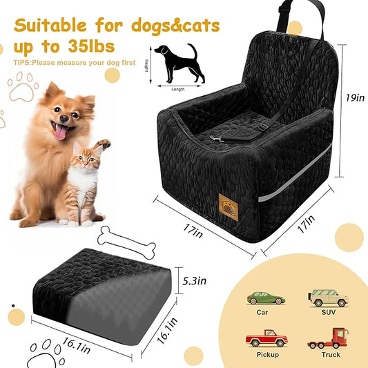 Dog Car Seat for Small/Medium Dogs, Memory Foam Dog Booster Seat, Travel Safety with Washable Removable Cover, Storage Pockets for Dogs up to 35 lbs(Black)
