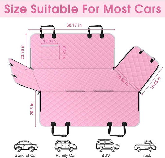 Waterproof Dog Car Seat Cover for Back Seat - Durable, Scratch Proof Pet Hammock with Nonslip Design & Storage Pockets, Fits Cars, SUVs, Trucks - L, Pink/Grey