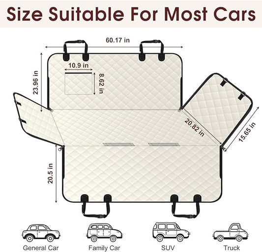 Dog Car Seat Cover, Durable Waterproof Scratch Proof Nonslip Dog Hammock, Pet Back Seat Covers with Pocket for Cars SUVs and Trucks - L, Beige/Black