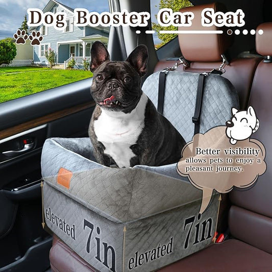 Dog Booster Car Seat with 7 Inches of Interior Height,Elevated Pet Car Seat for Small/Medium Sized Dogs,Puppy Portable Car Seat,Washable Removable Cover Travel Safety Car Seat,Easy to Use(H-Grey)