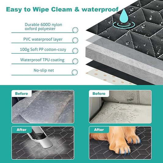 njnj Dog Car Seat Cover for Back Seat - Waterproof Dog Half Hammock for Cars,Scratchproof Pet Backseat Protector,Perdurable,Non-Slip Booster Seat for Small,Medium and Large Dogs