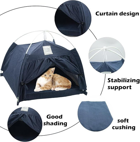 Cat Tent Bed,Cats Cave House Portable for Indoor with Removable Non-Slip Soft Pad Foldable Cat Tents Hut Washable Pet House Bed Outdoor for Kitty Puppy Small Pets 15.7x15.7x16.1 in (Navy Blue)