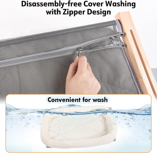 AMOSIJOY Cat Sill Window Perch Sturdy Hammock Window Seat with Cushion Bed Cover, Wood & Metal Frame for Large Cats, Easy to Adjust Cat Bed for Windowsill, Bedside, Drawer and Cabinet (M)