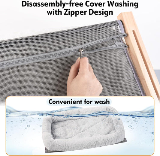 AMOSIJOY Cat Sill Window Perch Sturdy Hammock Window Seat with Cushion Cover, Wood & Metal Frame for Large Cats, Easy to Adjust Cat Bed for Windowsill, Bedside, Drawer and Cabinet (L)