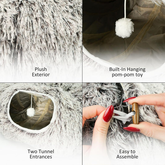 Cat Donut Bed with Washable Cushion – Cat Caves for Indoor Cats – Collapsible Donut Bed with Peekaboo Pet Tunnel Toy – Cozy Hideout for Kittens, Ferrets, Rabbits & Dogs - Brown