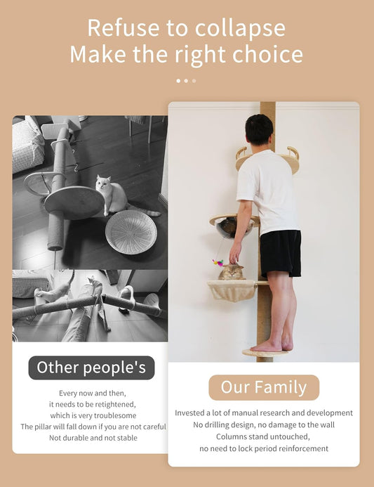 Floor-to-Ceiling Cat Tree with Natural Sisal Rope Scratching Post - Adjustable Height (55-119 Inches) - Modern Cat Activity Tree, Cat Scratcher Post