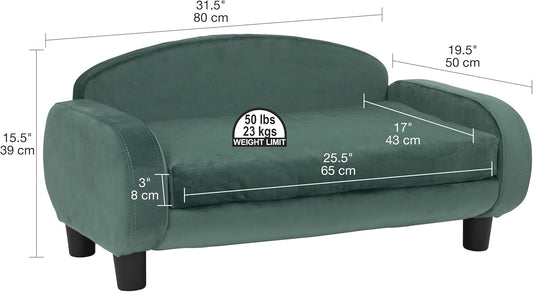 Paws & Purrs Cat Sofa Bed, Pet Couch for Indoor Cats Elevated Cat Beds with Removable Washable Mattress Cover for Kitten, Puppy or Small Animal- 31.5" Wide, Teal