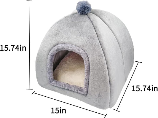Cat Beds - Large Indoor/Outdoor Gray Cat Bed Cave with Removable Cushion & Non-Slip Base (15.74"x15.74"x15")