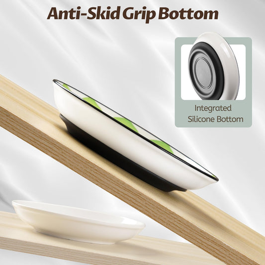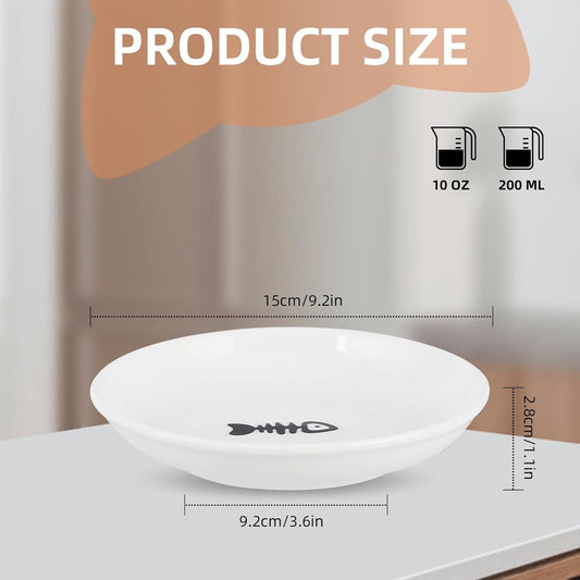 Ceramic Cat Food Bowls - 2 Pack Shallow Plates for Wet Food, Whisker-Friendly Feeding Dish with Non-Slip Silicone Base, Microwave & Dishwasher Safe for Indoor Cats & Kittens