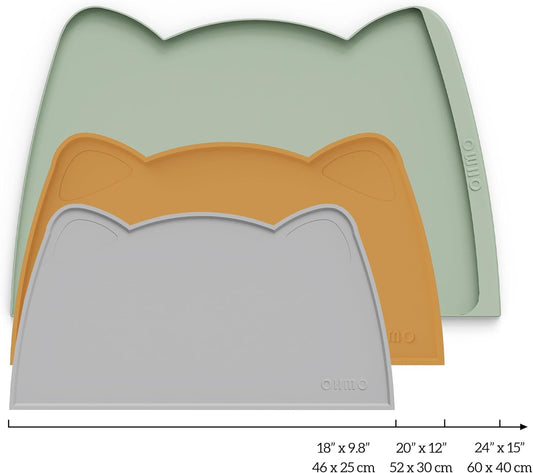 OHMO - Cat Food Mat, Silicone Pet Feeding Mat for Floor Non-Skid Waterproof Dog Water Bowl Tray, Easy to Clean Pet Placemat