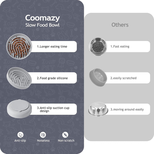 Coomazy Large Silicone Slow Feeder Dog Bowls, Interactive Puzzle Toy for Pets Food Training, Keeps Dogs Busy, Prevents Puppy Overeating (Smoke Gray, Large: 3.2Cup)